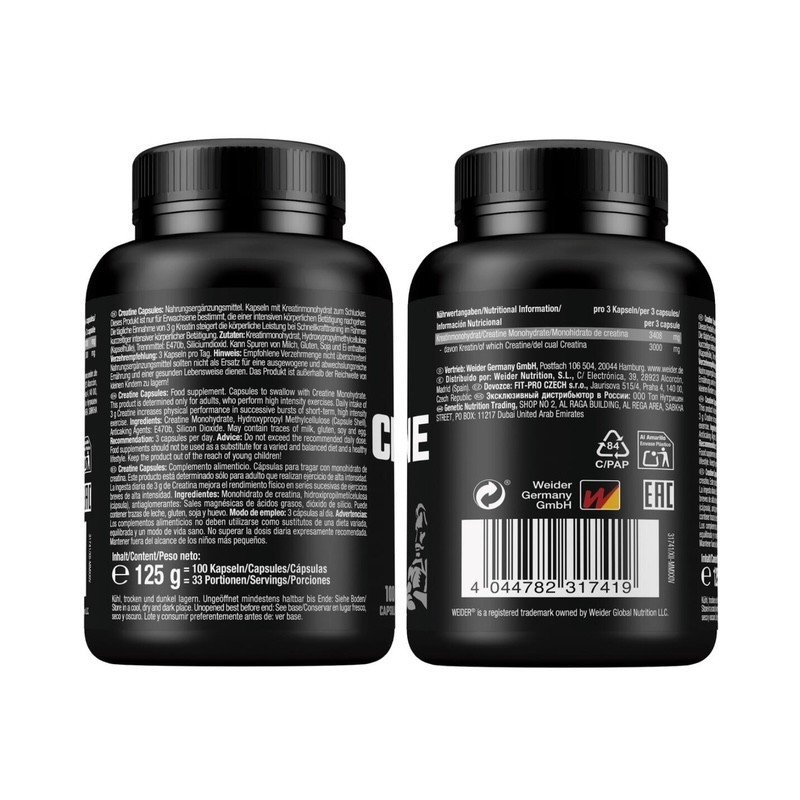 Monohidrato de creatina (Creapure®). Ideal para atletas de alto rendimiento. Una ingesta diaria de 3 g de creatina mejora el rendimiento físico en series sucesivas de ejercicios breves de alta intensidad. Apto para personas celíacas.