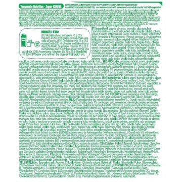 Super GREENS ha sido creado precisamente para enriquecer la dieta de vitaminas, minerales y oligoelementos de forma natural. La adición de fitoterapéuticos de acción adaptógena e inmunoestimulante completa la mezcla, única en el mercado, que cuenta con numerosas patentes y certificaciones. El práctico formato en polvo, para disolver en agua, proporciona una bebida refrescante con un potente efecto antioxidante, desintoxicante, alcalinizante y rehidratante.