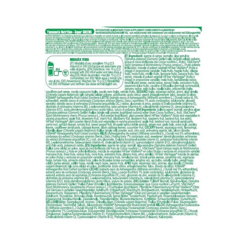 Yamamoto® Nutrition Super GREENS es un suplemento alimenticios compuesto único y exclusivamente por una combinación de más de 50 fitonutrientes procedentes de extractos de plantas, concentrados de frutas y hortalizas, vitaminas y minerales. No contiene azúcar, aromas artificiales, colorantes ni edulcorantes, que suelen encontrarse en productos similares. Se trata de una verdadera mezcla de principios activos naturales caracterizada por una muy elevada ORAC (Capacidad de Absorción de Radicales de Oxígeno, por sus siglas en inglés); es decir, está compuesta por vegetales capaces de absorber los radicales libres de oxígeno, gracias a su alto contenido en polifenoles, antocianinas, proantocianidinas y bioflavonoides.